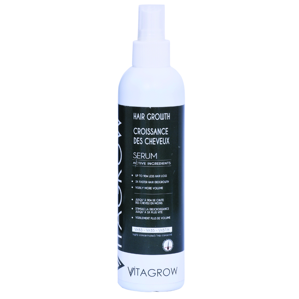 Le sérum stimulant la croissance des cheveux Vitagrow a une contribution cliniquement prouvée à la stimulation de la croissance des cheveux et à la lutte contre la chute des cheveux. Le sérum peut également assurer des cheveux plus épais et plus pleins. Le sérum Vitagrow contient une concentration élevée de 12 ingrédients actifs éprouvés, combinés dans le complexe de croissance capillaire Vitagrow®: